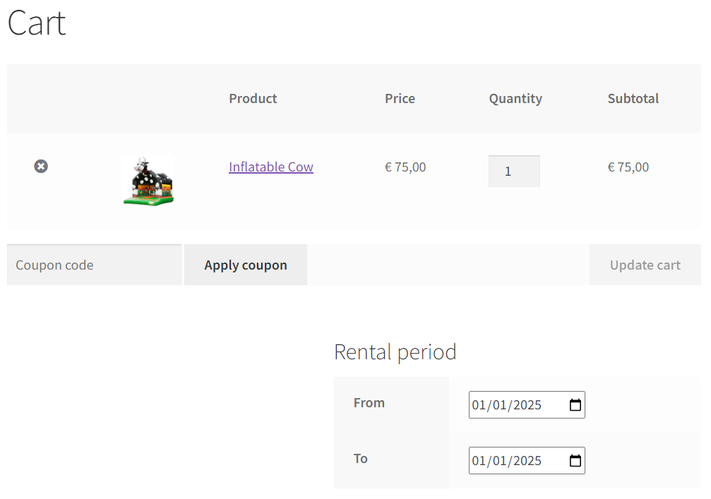 If the customer rents it for 3 days, it will be factored as 2.5 days. (2.5 x 75 = 187.5)